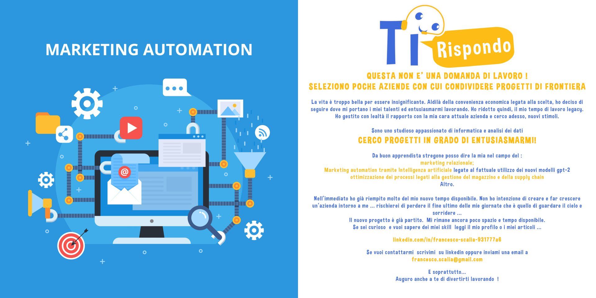 Riesco a conciliare più attività, tra l'Italia e la Svizzera. Mi occupo di fotografia e marketing con una mia attività a Cannero Riviera (VB) e un'altra attività di vendite di prodotti alimentari in Svizzera.